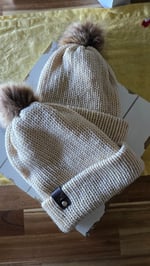 Beanie is made with a cotton/acrylic yarn blend and is knit in the round and double layered for warmth. Please note that because of the handmade nature of this product, color placement may not be exact and item may have some irregularities in the knit pattern.